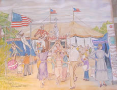 Large untitled circus painting by Reynolds Beal (N.Y./Mass., 1867-1951) (pictured)
