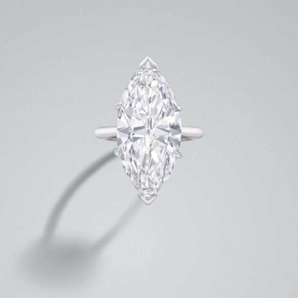 The top lot of the sale is a stunning diamond, of the very top quality: an internally flawless, marquise-cut diamond ring, D colour (colourless) weighing 9.22 carats is estimated to sell for £500,000 – 700,000. Estimated at £150,000 – 200,000 a cut-cornered step-cut diamond ring, weighing 9.06 carats will also be offered by Bonhams. The largest diamond in the sale, a brilliant-cut diamond ring weighing 24.47 carats, is estimated to sell for £170,000 – 220,000.