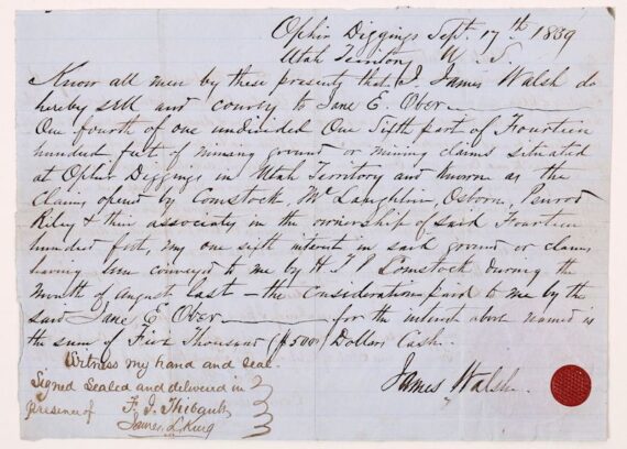 The auction featured more than 2,000 lots in many categories that included mining, philatelic, numismatic, railroadiana, Native Americana and more. The Comstock Lode doc was the top lot. RENO, Nev. – An historic document from 1859, dating to the very beginning of the Comstock Lode silver rush in the U.S. and including [Read More]
