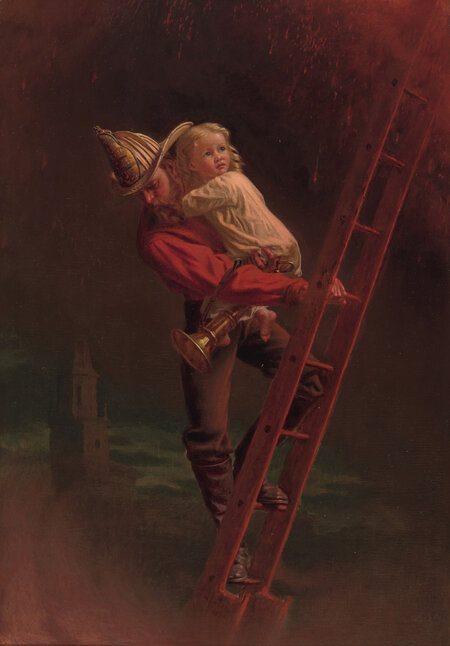 American genre paintings from this period are led by a rare Thomas Waterman Wood titled The Rescue from 1870. Featured on the 1873 cover of Harper’s Weekly, this painting depicts a firefighter heroically rescuing a little girl and carrying her down a ladder. The background is filled with smoke and embers and the masterful depiction of light surrounds the figures in a warm glow as they escape to safety. The painting has been in a private collection for over four decades and is estimated to bring $20,000-30,000.